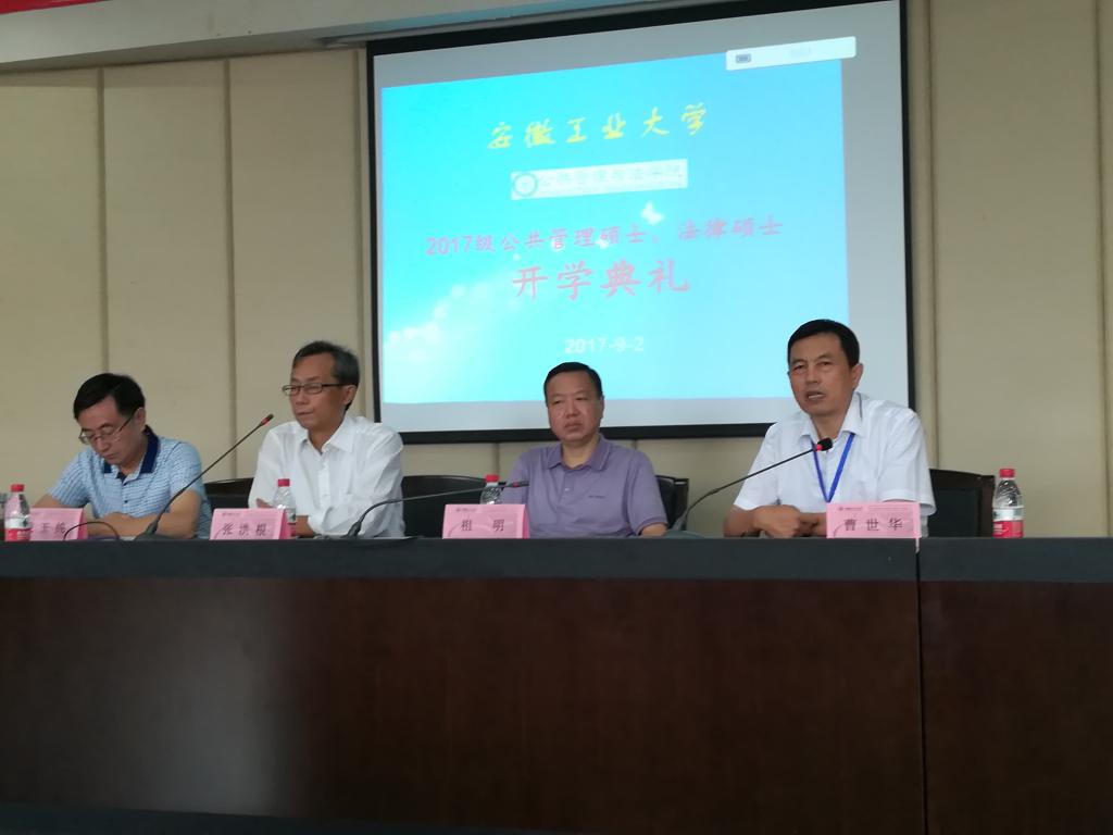 9月2日,学院在佳山校区召开了2017级公共管理硕士(MPA)、法律硕士(JM)学员开学典礼,安徽工业大学副校长祖明、mobile365党委书记曹世华、院长张洪根、全体MPA及JM指导教师、2017级全体MPA及JM学员参加了开学典礼,开学典礼由公共管理学院院长张洪根主持。