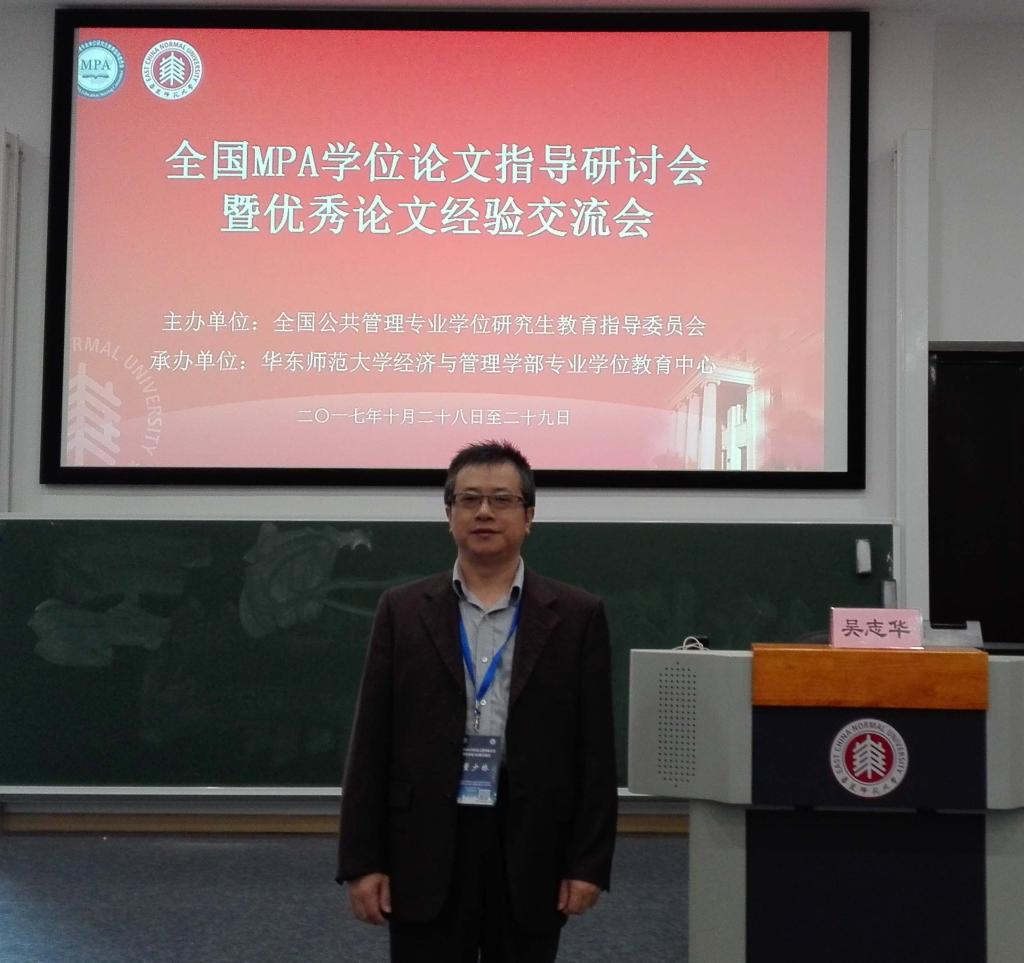2017年10月28日至29日,“全国MPA学位论文指导研讨会暨优秀论文经验交流会”在华东师范大学中山北路校区举办。来自清华大学、中国人民大学、中山大学、复旦大学、哈尔滨工业大学、东北大学和苏州大学等MPA培养院校的150余位专家、领导、论文指导教师和在读MPA学员出席了此次会议,哈尔滨工业大学米加宁教授、东北大学孙萍教授、华东师范大学孟溦教授、复旦大学朱春奎教授等四位全国MPA教指委委员也莅临现场并参加交流。本次会议邀请了全国教指委委员、优秀论文指导教师和优秀论文作者共14位授课专家分享经验,旨在促进全国MPA学位培养教育提升,进一步凝聚共识,全面提升MPA学位论文质量。