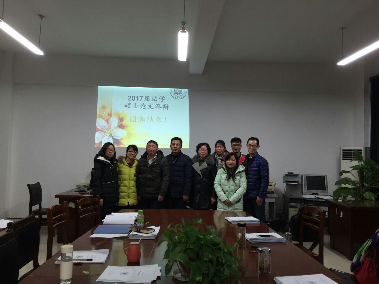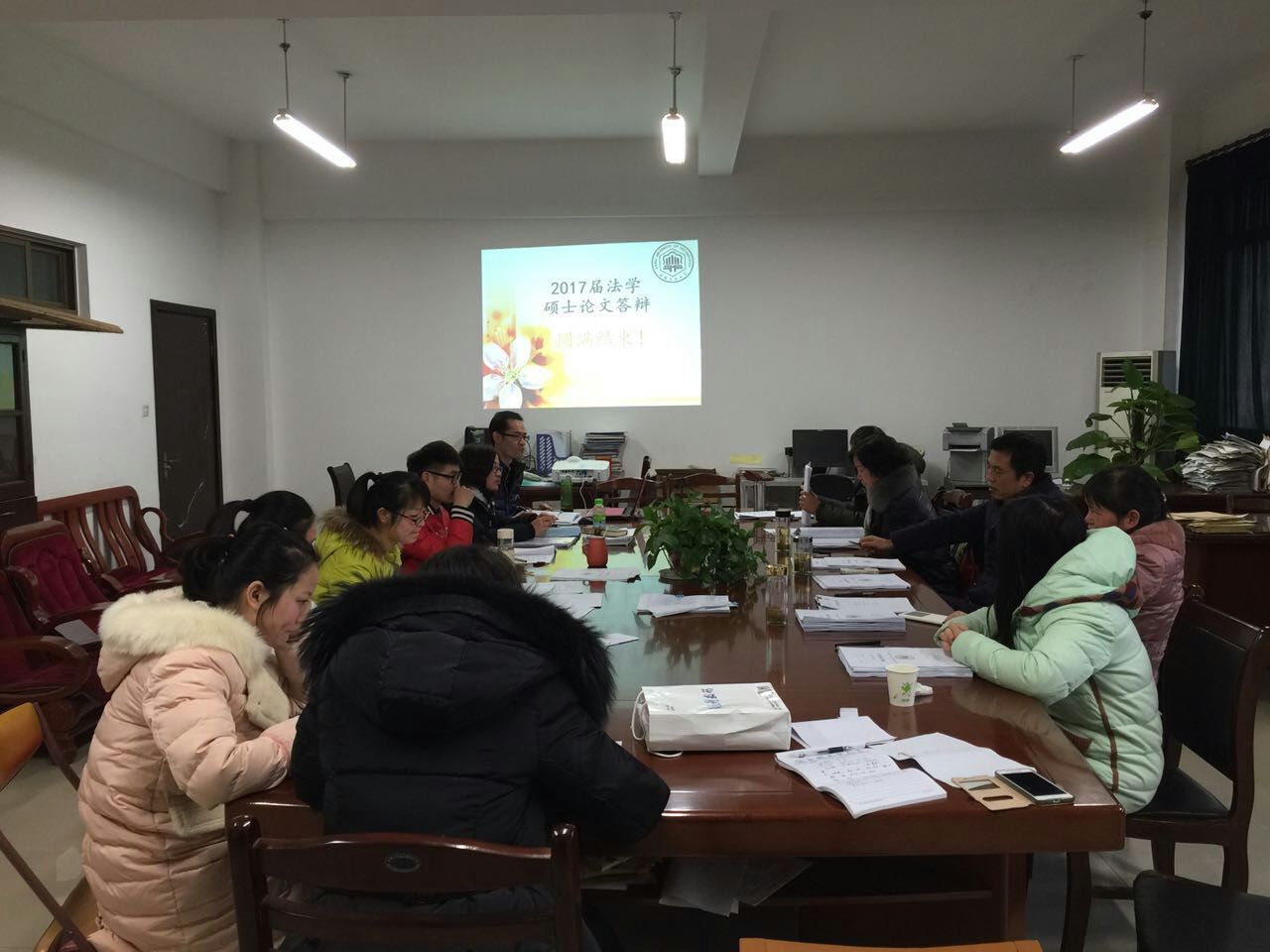 12月29日,学院2017届社会政策与社会法硕士毕业论文答辩工作在法学系办公室举行,学院党委书记曹世华教授担任此次答辩评委会主席,法学系戚枝淬、邓可祝、孔东菊和李欣四位副教授参加了此次答辩工作。